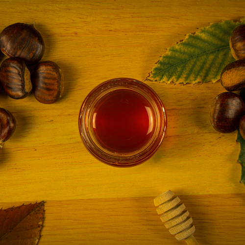 • Scuro e Intenso: Il miele di castagno si distingue per il suo colore scuro e il sapore intenso, che lo rende unico rispetto ad altri mieli.